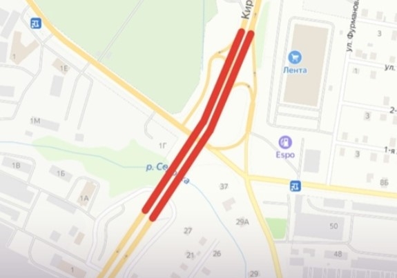 Оставят одну свободную полосу сначала в сторону города, потом в направлении Кирилловского шоссе. Второй этап намечен 25 июня. Дорожники займутся другими деформационным швом по той же схеме.