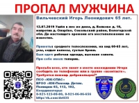 Мужчина отправился в лес неподалеку от деревни Оларево Сокольского района. Игорь Леонидович среднего телосложения, выглядит на свой возраст. У него седые волосы, усы, густые брови. Был одет в рабочую одежду, высокие сапоги, при себе имел топорик.