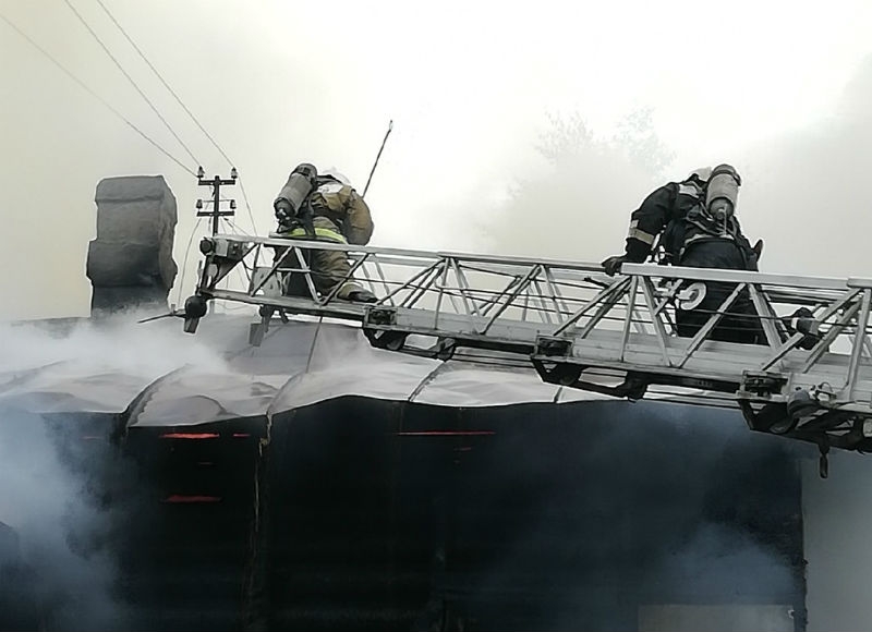 Раньше в этом двухэтажном здании находилась адвокатская контора, магазин. Но постепенно оно опустело и уже много лет уже стояло пустым. Сегодня вечером в пожарную службу поступило сообщение о возгорании дома. Буквально пару минут на место прибыли сотрудники МЧС.
