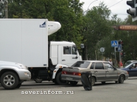 На перекрестке Мальцева и Октябрьской столкнулись «ВАЗ» 14 модели и «КАМАЗ»
