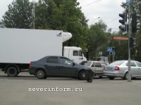 Грузовик и легковушка столкнулись в центре Вологды