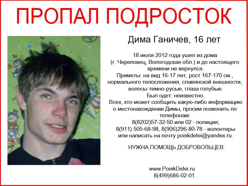 Всем, кто что-нибудь знает о местонахождении Димы и готов помочь, необходимо звонить по телефонам: 8(8202)57-32-50, или 02, а также 8(911) 505-68-98, 8(906)296-80-78.