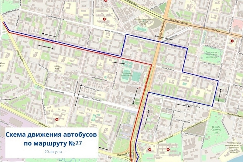 № 27 (с 18.00 18 августа до 05:00 21 августа) — по Сталеваров, Московскому проспекту, Горького, Вологодской, Металлургов, Доменщиков, Ленина, далее по маршруту. В обратном направлении без изменений;