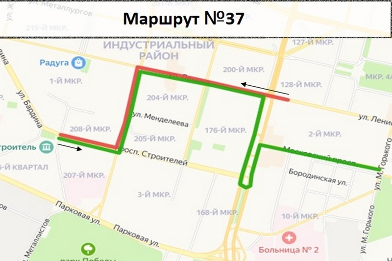 № 37 — по Ленина, Ломоносова, Строителей, в обратном направлении по Строителей, Ломоносова, Ленина, Сталеваров, Московскому проспекту;