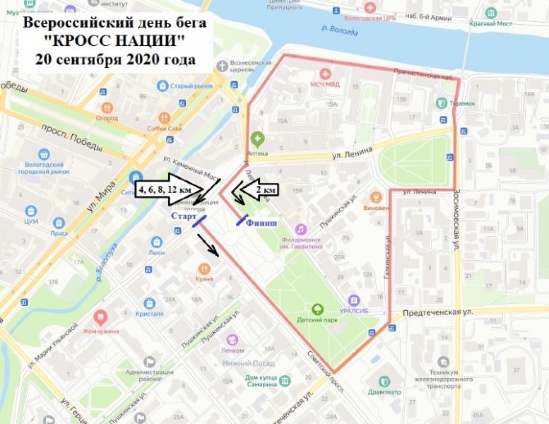 Участники могут выбрать дистанцию, которую они хотят пробежать. Это могут быть 2, 4, 6, 8 и 12 км. Маршрут будет пролегать по центральным улицам города: Марии Ульяновой, Советскому проспекту, Лермонтова, Галкинской, Зосимовской и Пречистенской набережной. Уже 170 вологжан подали заявки на участие в забеге.
