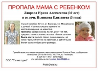 Стали известны подробности пропажи женщины с ребенком в Вологде. Напомним, 30-летняя Ирина Лаврова вместе с ее трехлетней дочкой ушла из дома больше недели назад. Пропавшая покинула свою квартиру на улице Можайского областного центра 8 октября. Обеспокоенная мать обратилась с заявлением в полицию.