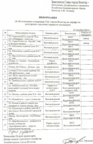 Список улиц, которые должны были отремонтировать в октябре
