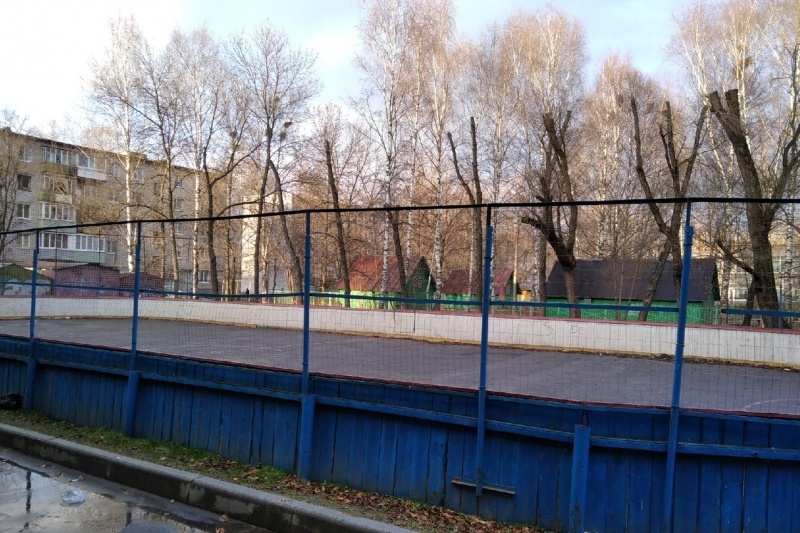 Обновят покрытие и борта корта, заменят сетку, сделают дополнительные входы; установят ворота, баскетбольные кольца, стойки для волейбольной сетки и добавят освещения.