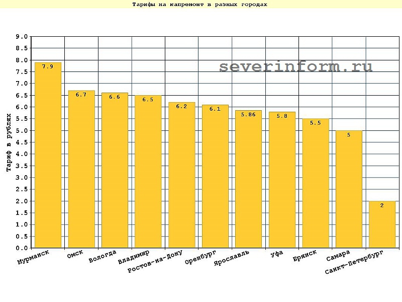 Проблема в том, что тариф сделали единым для жителей всего региона - вне зависимости от состояния дома, этажности, использованных при строительстве материалов и прочего. Тогда, как в других регионах сумма тарифа дифференцируется. Например, в Оренбурге для домов до трех этажей включительно тариф на капремонт установлен в размере 3,9 рубля. А для жителей домов с большей этажностью: 4,85 рубля и 6,1 рубля за четыре-пять и более шести этажей соответственно. В Мурманской области предполагаемые тарифы для разных домов также не одинаковы: от 3-х рублей до 7,9 рубля.