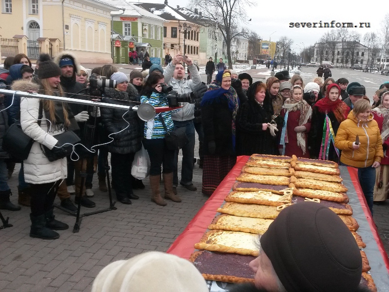 Добавим, что завершающую часть программы снимали в самой Вологде, где на одной из главных площадей города и угощали жителей "Царь-пирогом".