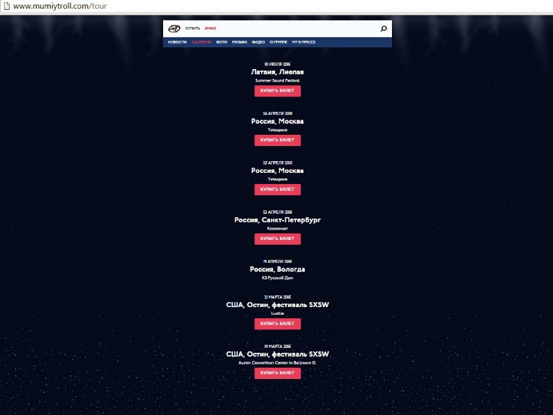 На официальном сайте группы обозначено пока только всего 7 концертов и областная столица в их числе. Организатором выступления «Мумий Тролля» в Вологде является областной рок-клуб.