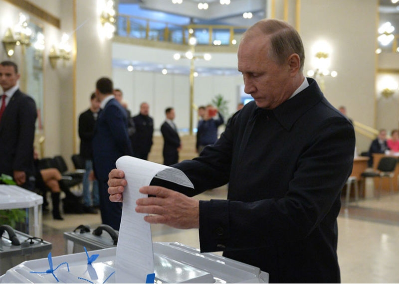 Путин подошел к сотруднику избирательной комиссии, предъявил паспорт, получил бюллетень и направился в кабинку для голосования, пишет РИА Новости. Спустя полминуты, проведенные в кабинке, Путин вернулся к столу с сотрудниками избирательной комиссии. Они вручили ему значок с надписью "Я выбрал президента России". После этого он подошёл к КОИБам и опустил бюллетень в урну для голосования.