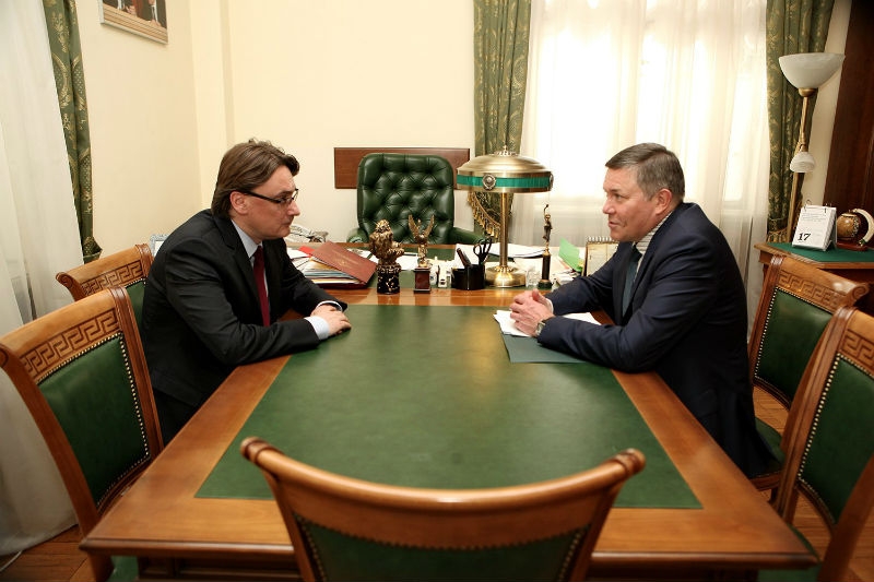 Развитие внешних связей Вологодчины обсудили на встрече в Москве заместитель Министра иностранных дел России Евгений Иванов и губернатор Вологодской области Олег Кувшинников.