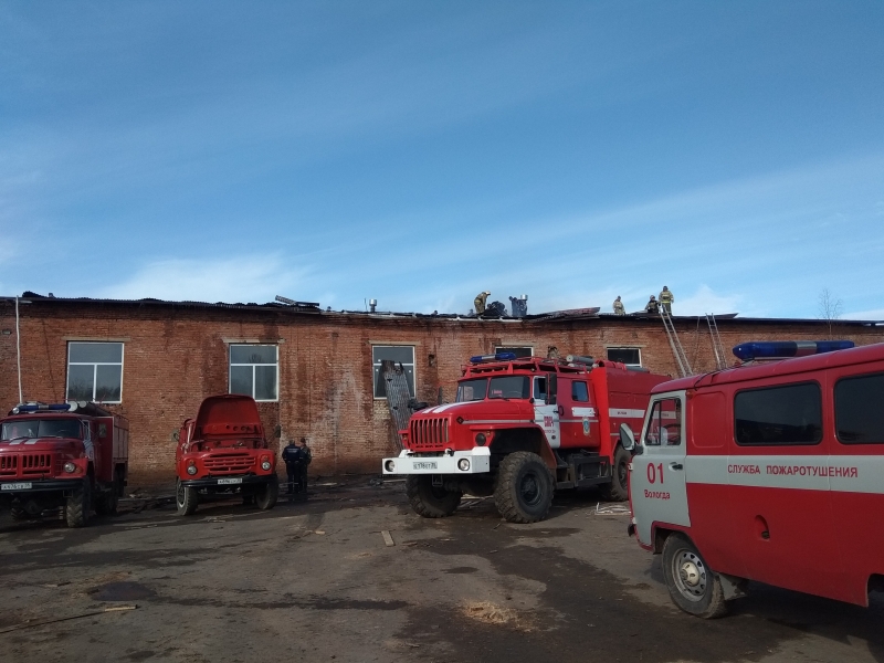 Два часа тушили пожарные цех пиломатериалов под Вологдой