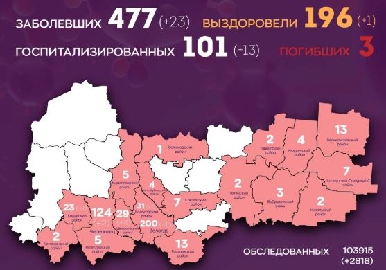 Всего в регионе уже 477 случаев опасной инфекции. По количеству больше всего больных в Вологде, Череповце, Вологодском, Шекснинском и Кадуйском районе, сообщает ИА "СеверИнформ".
