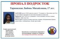 Подросток пропал в Устюжне. Любовь Тарновская ушла из дома на улице Веселова. Это случилось утром 16 мая. С тех пор о местонахождении девушки ничего не известно. ПСО "Азимут" распространил сообщение о поиске.