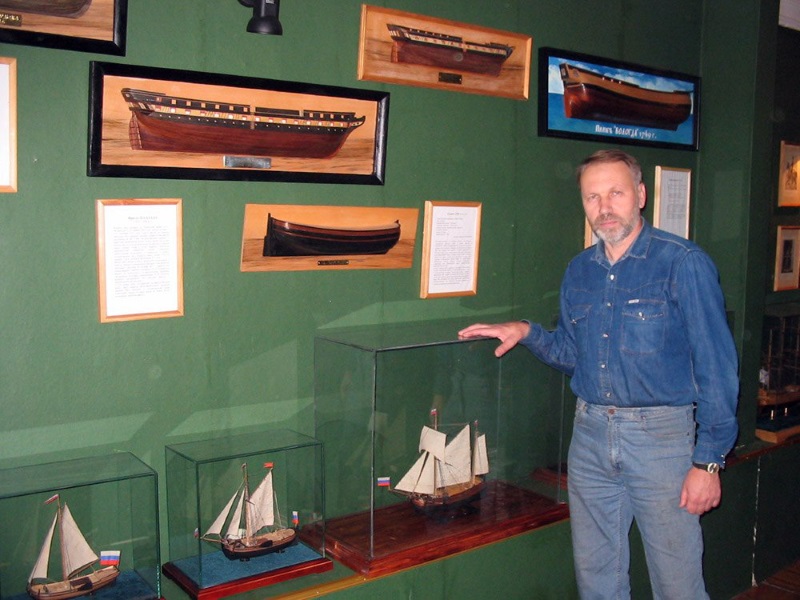 Автор выставки - Сергей Лушкин – служил на Дальнем Востоке, морской офицер, капитан 2 ранга в отставке. Благодаря любви к морю и знаниям, полученным в Ленинградском военно-морском училище подводного плавания он освоил основы судомоделизма, которым он занимается больше 25 лет.