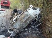 Легковушка вместе с автомобилисткой сгорела после столкновения с грузовиком
