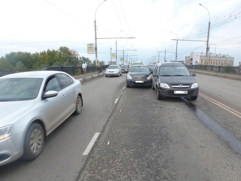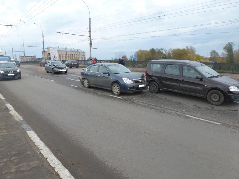 Автомобиль в Вологде протаранил стоящие на мосту машины