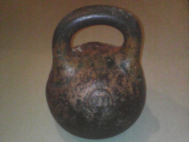 «Антикварная гиря, вес 2 пуда/32 кг, русского силача, писателя, вологжанина - Владимира Гиляровского. Гиляровскому она была подарена другим известным писателем – Львом Толстым в 1880 году. Тогда еще молодой Гиляровский встретился с автором «Войны и мир» в Ясной Поляне. Толстому гиря досталась от императора Александра III, который так был растроган трагической кончиной Анны Карениной в одноименном романе, что повелел вписать в свое завещание известного писателя и эту гирю. Сама же гиря, была изготовлена на Шуйском оружейном заводе в городе Петрозаводске на берегу Онежского озера в 1710 году самим Петром I для личных силовых занятий по утрам».