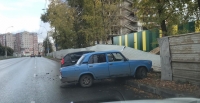 Строительный забор протаранили два автомобиля после столкновения