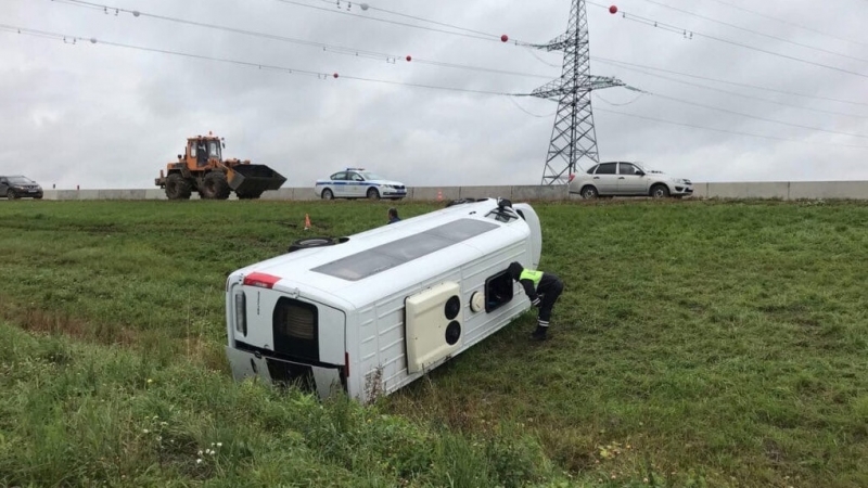 Экскурсионный микроавтобус съехал в кювет и опрокинулся. В салоне было 20 пассажиров. ДТП случилось около 6 утра в субботу, 18 сентября.