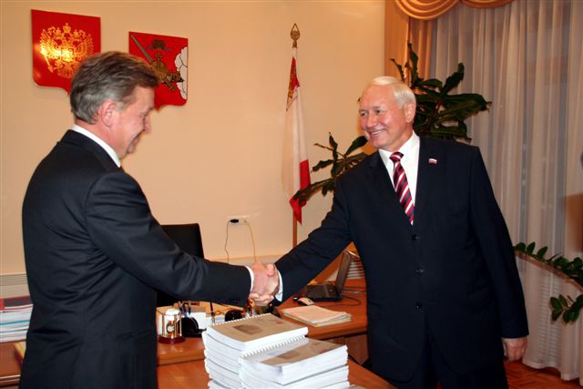 Проект бюджета Вологодской области на 2012 год и плановый период 2013-2014 годов внесен в областное Законодательное Собрание сегодня, 18 октября. Как сообщили ИА «СеверИнформ — Новости Вологодской области» в пресс-службе Заксобрания, по поручению Губернатора области председателю Законодательного Собрания Николаю Тихомирову проект бюджета вручил начальник департамента финансов, первый заместитель Губернатора области Сергей Тугарин.