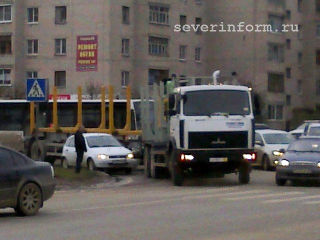 На Северной лесовоз вытолкнул на газон автомобиль «LADA Kalina»
