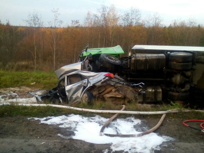 В иномарке никто не выжил, погибли водитель и два его пассажира. На месте аварии работают сотрудники ГИБДД, сообщает ИА «СеверИнформ».