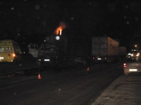 "Авария произошла на третьем километре Северной автодороги. 43-летний водитель тягача "Volvo" с полуприцепом выехал на "встречку" и допустил столкновение лобовое с КАМАЗом, за рулем которого находился 53-летний мужчина. В результате ДТП оба водителя получили травмы различной степени тяжести. С места происшествия их доставили в больницу", - рассказали корреспонденту ИА "СеверИнформ" в пресс-службе УМВД России по Вологодской области.