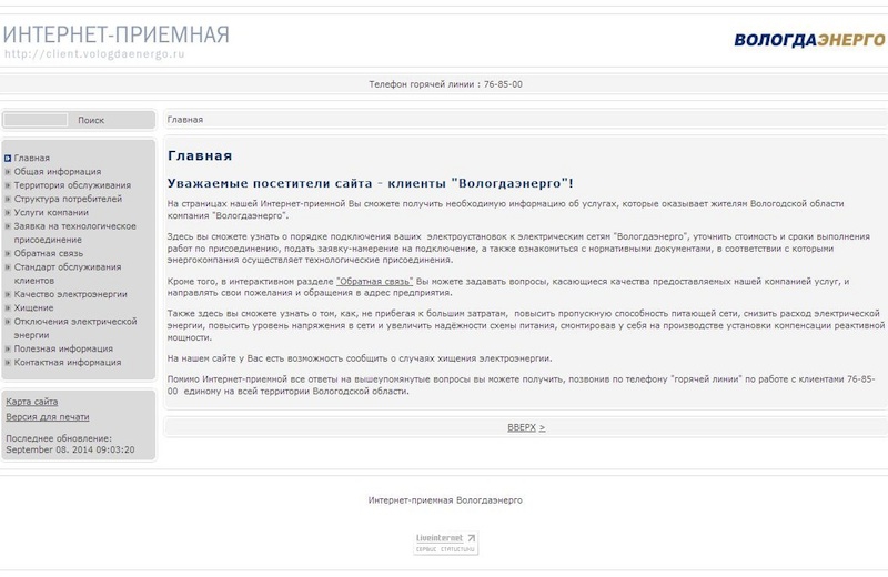 Доступность представленной информации посетители интернет-приемной периодически отмечают в форме благодарственных обращений. Потребители адресуют энергетикам свои благодарности, в частности, «за легкую навигацию сайта», «за удобное оформление», «за понятную информацию». Благодаря действующей системе «обратной связи» сотрудники «Вологдаэнерго» смогли убедиться в целесообразности созданного интернет-проекта, который реализован в соответствии с политикой клиентоориентированности.