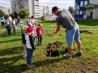 Сам сквер на пересечении улицы Новгородской и Пошехонского шоссе был заложен чуть ранее, летом. А в начале осени детсадовцы высадили в нем 30 саженцев. Среди них были туи, горные и обычные сосны, голубые ели, а также клены и барбарисы. До сих пор дети приходили в это место, и каждый проверял свое дерево.
