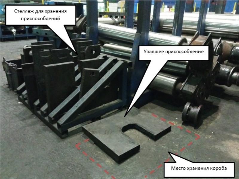 "На ногу сварщика упало приспособление для выпрессовки валков весом 420 кг. Оно не было установлено для хранения, просто стояло вертикально, хотя место тут же, в стеллаже, было. На момент происшествия еще одна подобная деталь была расположена в вертикальном положении с другой стороны от стеллажа, еще несколько - в горизонтальном. Согласитесь, очевидно, что здесь так делать привыкли. Печальный случай".