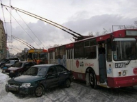 По всей видимости, водитель троллейбуса не выдержал безопасную дистанцию и столкнулся с легковушкой, которая выезжала со стороны Авксентьевского. Подробности аварии пока неизвестны, сигнал о столкновении в дежурную часть ГИБДД не поступал. По предварительным данным, никто из пассажиров общественного транспорта не пострадал.