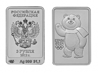 Монета достоинством 3 рубля отчеканена из серебра и вышла тиражом 300 тысяч экземпляров. 50-рублевую монету выпустили таким же тиражом. Она сделана из золота. Монету номиналом 100 рублей отчеканили также из золота и тиражом 100 тысяч штук. На оборотной стороне трех видов монет изображен один из символов XXII Олимпийских зимних игр 2014 года в Сочи — Белый Мишка. Все монеты являются средствами наличного платежа и обязательны к приему по номиналу без ограничений.