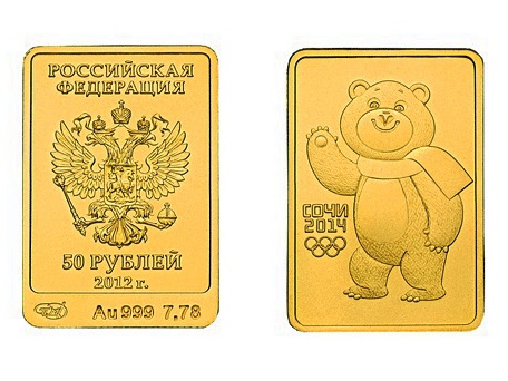 Прямоугольные монеты в честь Олимпиады в Сочи выпустил Банк России