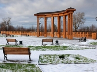 Теперь здесь появились прогулочная зона со смотровыми площадками, необычная деревянная аркада, светильники под старину, детская площадка с качелями и каруселями.