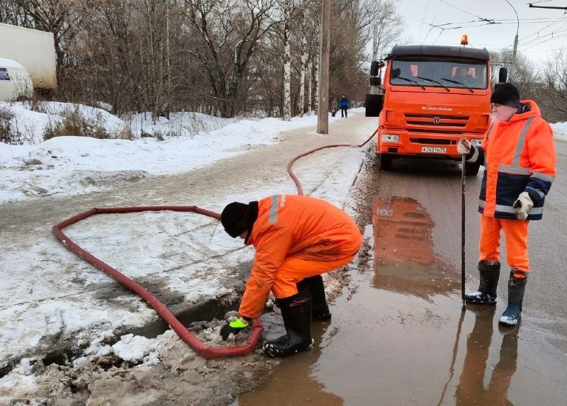 Коммунальщики чистят колодцы, ожидая потоки растаявшего снега