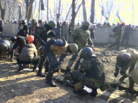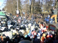«Беркут» стоит у стелы, наполовину находятся на Майдане. Концерт идет, все спокойно. «Беркут» находится там, где установлены палатки - со стороны Институтской. Они полностью заняли периметр, - рассказал корреспонденту ИА «СеверИнформ» Сергей Анисифоров. - Нас сейчас около 10 тысяч человек. Народ с регионов всеми возможными путями добирается на Майдан. Пытаются прорваться со стороны Крещатика. Со стороны Михайловской и Житомирской сооружаются новые баррикады».