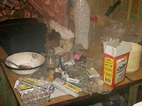 Во время осмотра квартиры, которую снимал 38-летний мужчина, оперативники нашли жидкость бурого цвета, содержащую 0,834 грамма химического наркотика. У задержанного изъяли крупную партию запрещенного вещества и предметы для его производства.