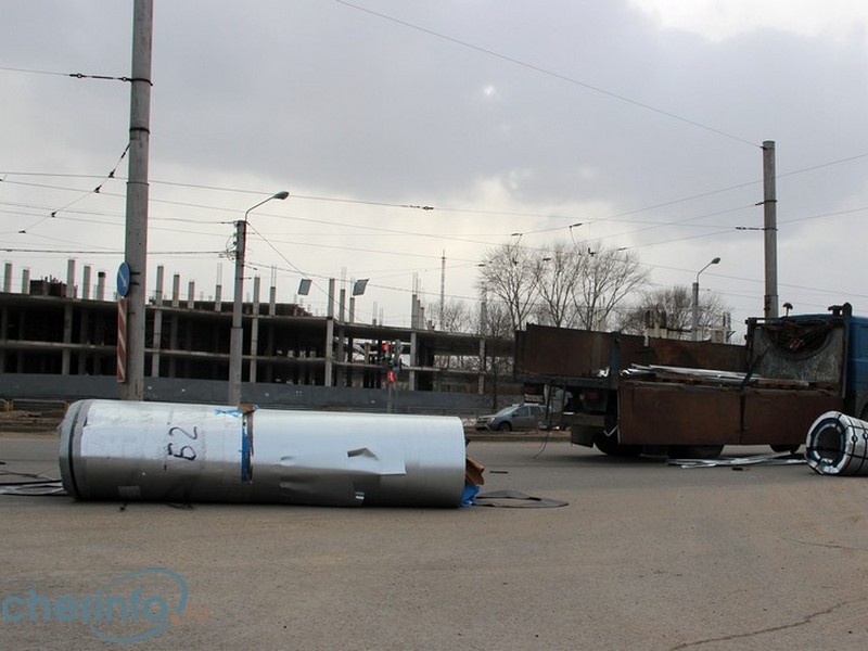Многотонные рулоны металла вывалились из грузовика на оживленном перекрестке в Череповце
