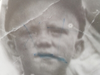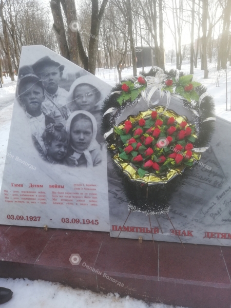 Небольшой памятник установлен недавно. На нем данные о вологжанах, которых Великая Отечественная сделала сиротами, и фотографии. Вот над ними вандалы и надругались, изрисовав маркером лица.