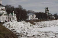 Уровень воды в реке Сухоне в районе Великого Устюга поднялся за сутки более, чем на один метр. Об этом сегодня, 19 апреля, сообщает ИА "СеверИнформ - Новости Вологодской области". Как рассказала корреспонденту агентства гидропрогнозист ГУ ВЦГМС Ирина Риммер, сейчас вода находится на отметке 2 метра 99 сантиметров выше нуля водомерного поста, тогда как накануне это показатель был равен 1,88 метра. По словам Ирины Риммер, рост вызван повышением уровня воды в реке Юг. Там продолжается ледоход, но на участке от Кичменгского Городка до слияния с Сухоной образовался так называемый подпор уровня воды. Их-за него вода не может пройти в Северную Двину и уходит в Сухону. На самой же Сухоне продолжаются подвижки льда, начавшиеся накануне.