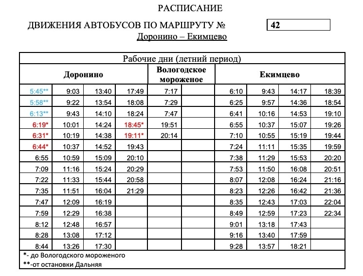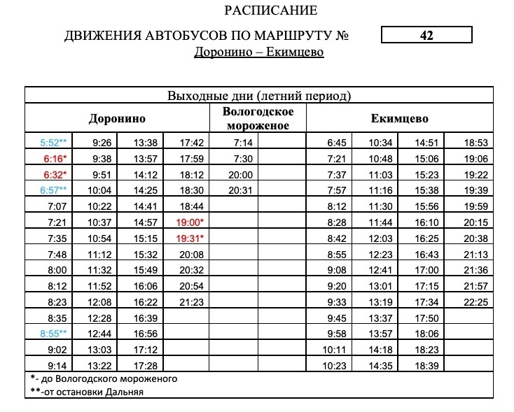 Изменения связаны с наступлением дачного сезона. Они вводятся с 22 апреля и на всё лето. С субботы маршрут №42 «Дальняя — Екимцево» будет продлен до остановки «Доронино». Об этом говорится в группе ПАТП-1.
