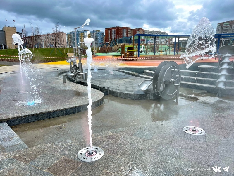 У фонтана несколько режимов работы с 27 модулями: пенные и бегущие струи, крутящиеся диски. Каждый из них отвечает за свой режим работы. Вечером в воде будет включаться подсветка.