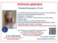 Информацию о пропаже Елизаветы Поповой поисковые отряды стали распространять 18 мая. Говорилось, что о подростке нет известий с 11 мая. Сегодня выяснилось, что девушка находится на 9 месяце беременности. Есть данные, что может быть в Заречной части города.