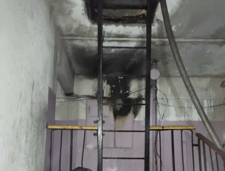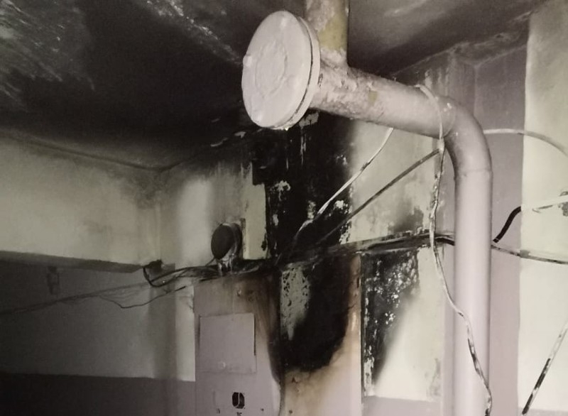 Пожар возник в половину 12 ночи. Загорелся элетрощиток, расположенный на последнем этаже у выхода на крышу. В итоге 2 взрослым и 2 детям пришлось в ночи спасаться от дыма и гари.