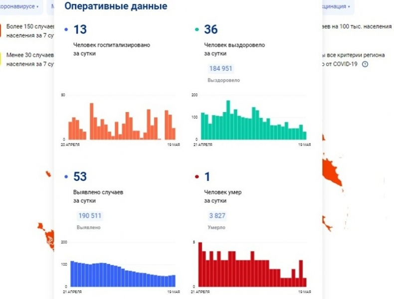 В Вологодской области за прошедшие сутки заболело 53 человека, 36 избавились от вируса, один пациент скончался.