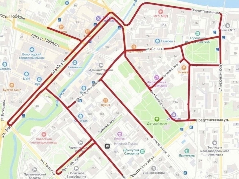 С 5.00 до 13.00 будет запрещена стоянка транспорта, а с 7.00 до 13.00 запрещено движение транспорта на участках следующих улиц: площадь Возрождения, Лермонтова, Галкинская, Ленина, Зосимовская, Пречистенская набережная, Мира, Козленская, Пушкинская, Марии Ульяновой, проспект Победы и Советский проспект.