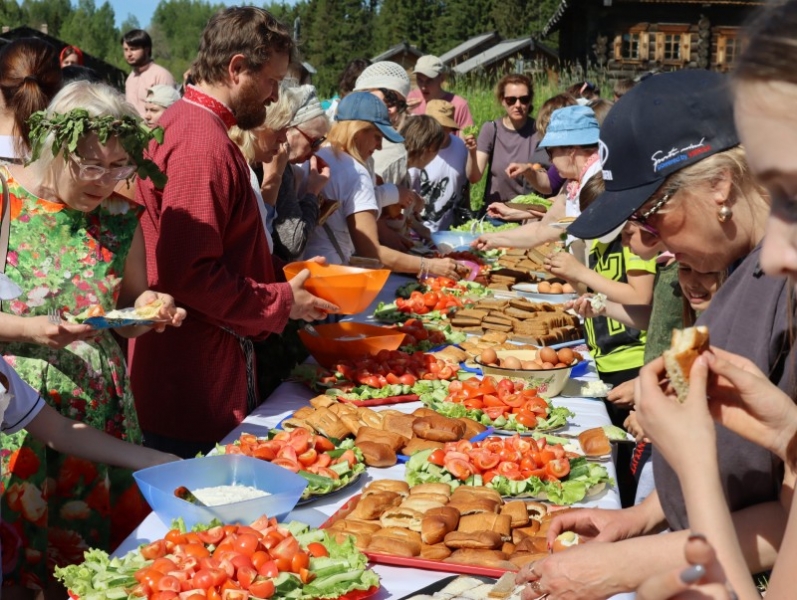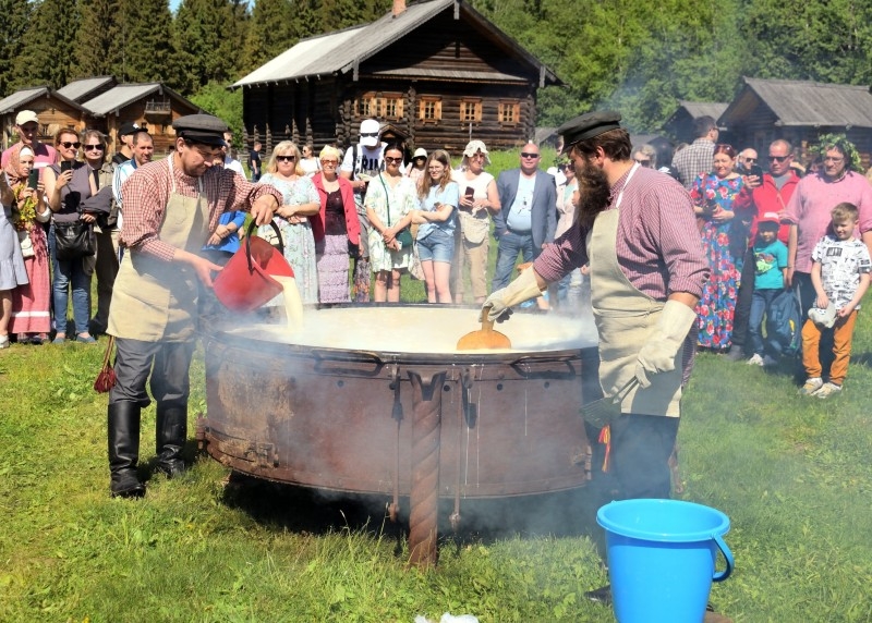 Более 10 лет назад в музее под открытым небом родилась идея устраивать братчину на Троицу. Ее поддержали вологодские предприниматели. Главным символом Троицы, как и Пасхи, является яйцо. Оно олицетворяет вечную жизнь и возрождение. Поэтому и основным блюдом братчины становится яичница – селянка. Готовится она на 2-метровой сковороде.